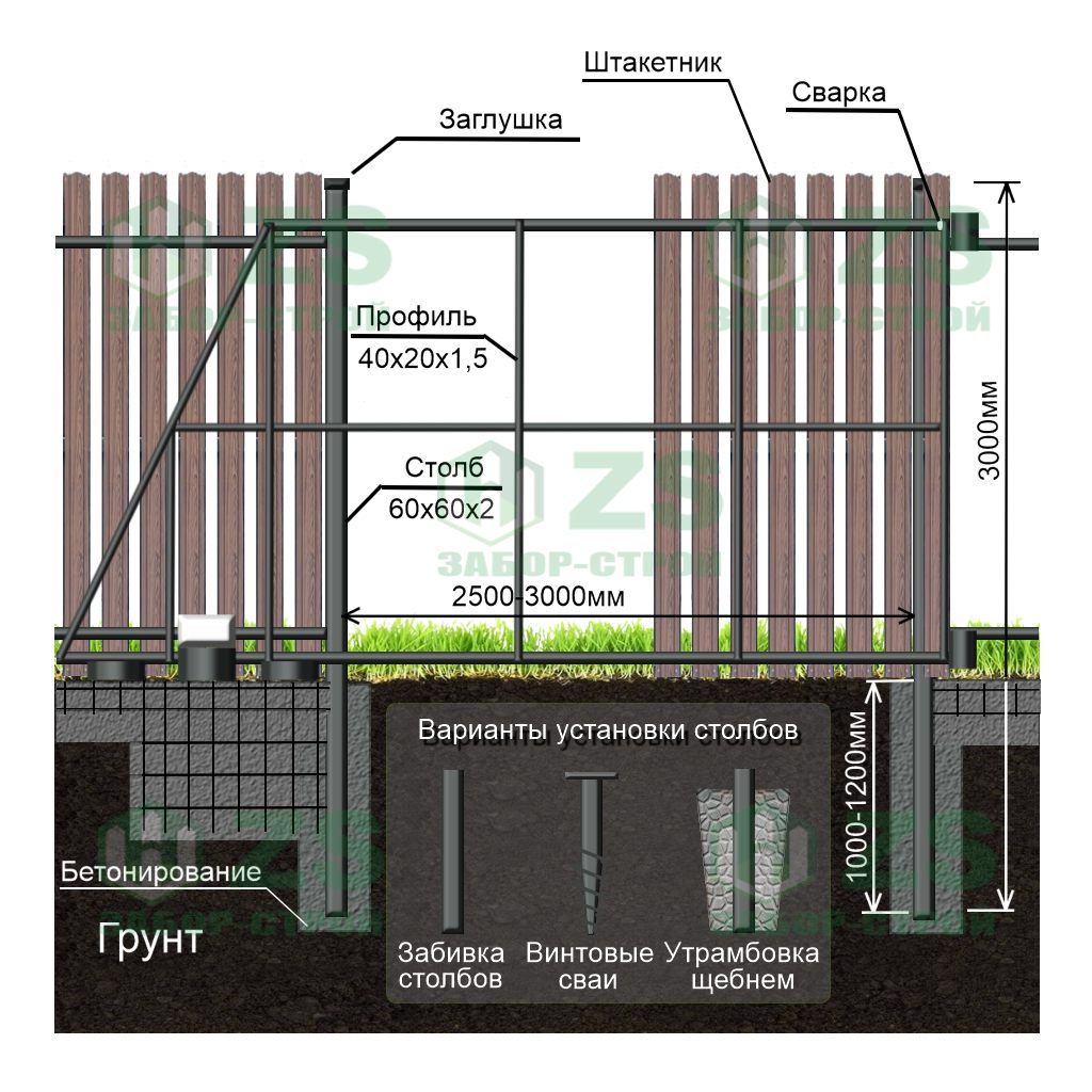 Откатные ворота в раме (отделка профнастил, евроштакетник, поликарбонат, сварной, кованый):