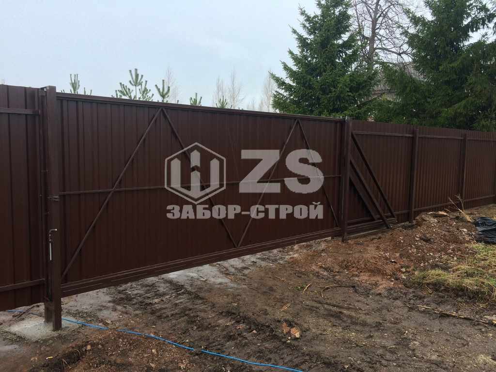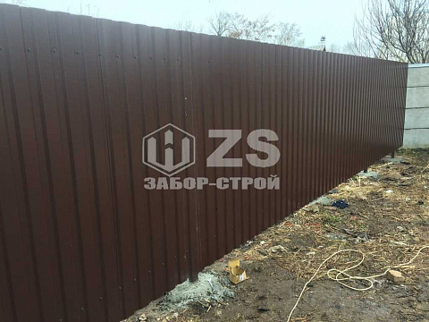 - Забор с бетонированием столбов из профнастила 8 соток