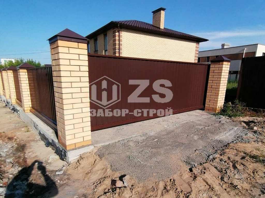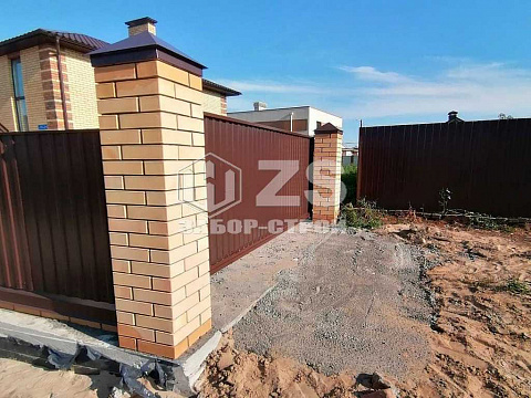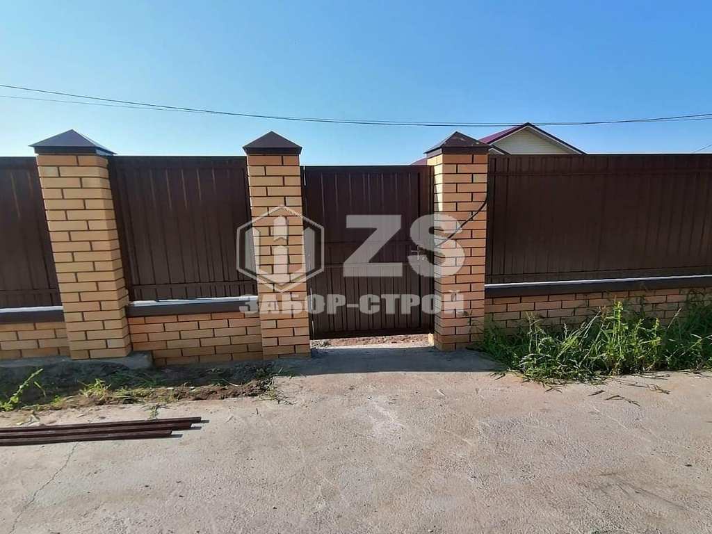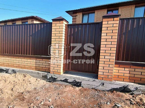 - Забор с кирпичными столбами