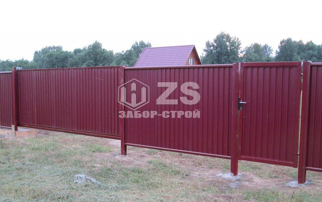 - Забор с воротами из профнастила 8 соток